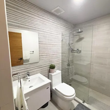 L'appartamento comprende un balcone e una zona spogliatoio con un impianto di climatizzazione per il massimo comfort. Un vantaggio per gli ospiti del Long Stay Low Price Executive Suite In Exclusive Area In Santo Domingo è la presenza di asciugacapelli, essiccatori e teli da bagno nel bagno. Inoltre, sono presenti un bagno con WC separato e una doccia.